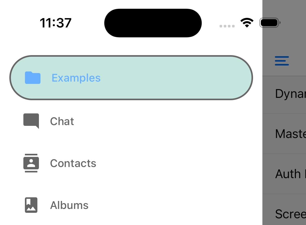 state- The navigation state of the navigator.navigation- The navigation object for the navigator.descriptors- An descriptor object containing options for the drawer screens. The options can be accessed atdescriptors[route.key].options.